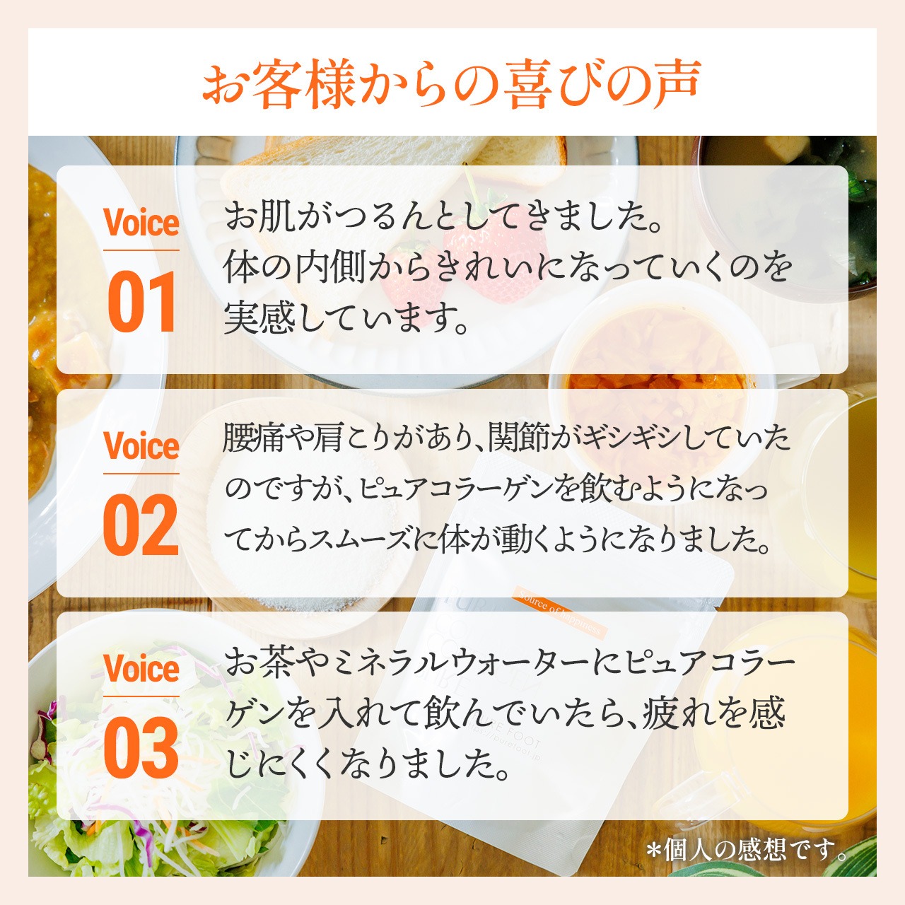 普段の食事や飲み物にサッと混ぜるだけで、良質なコラーゲンを毎日摂取できます。