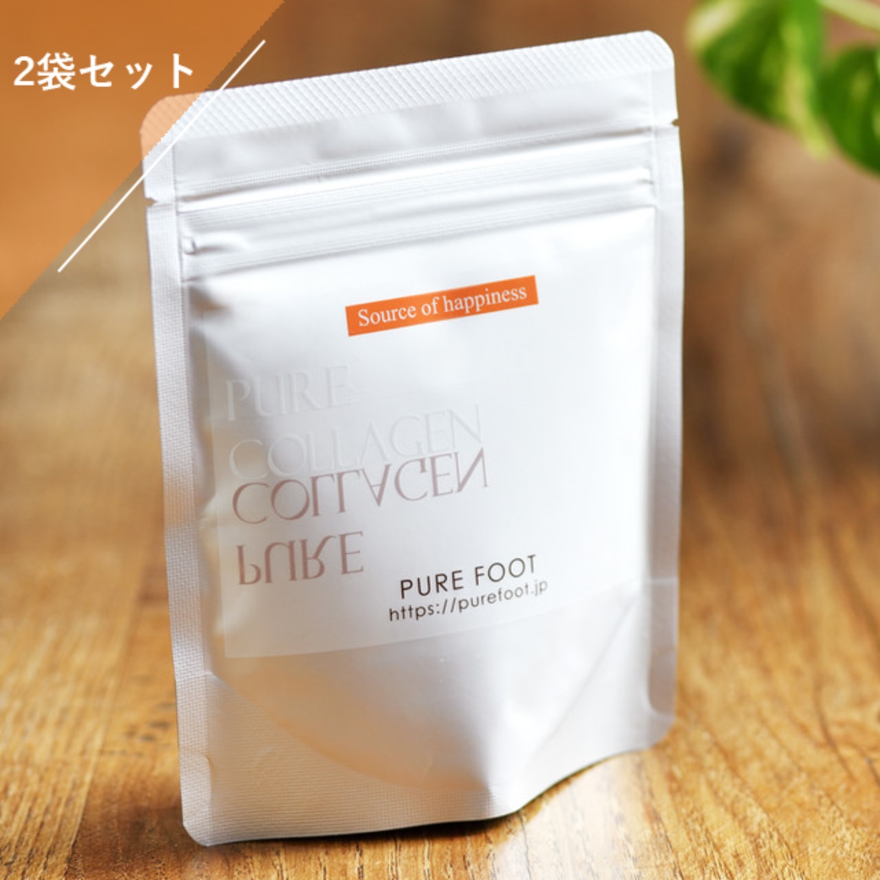【2個袋セットのご購入】PUREFOOTオリジナル『PURECOLLAGEN(ピュアコラーゲン)』。良質なコラーゲンを美味しく、そして簡単に摂ることができます!無味無臭で熱にも強く、毎日飲み続けるものだからお手頃な価格にしております。